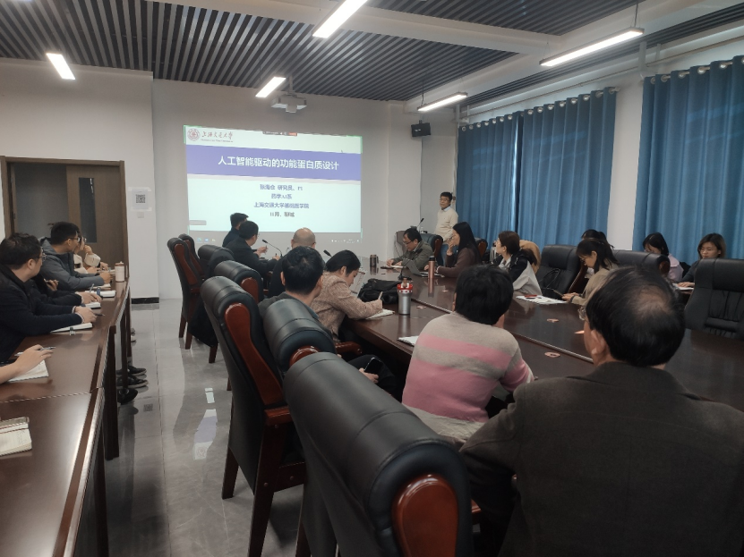 报告会上,张海仓首先系统介绍了天然蛋白质的基本特性、蛋白质设计的典型应用以及近十年来人工智能方法在该领域取得的突破性进展,全面解析了人工智能驱动功能蛋白质设计的关键技术路径。团队在该方向取得重要突破,基于自主开发的深度学习代表技术AlphaFold2与代表性工具ESM-2,实现了具有特定功能的全新蛋白质的“从头设计”与快速优化。该技术能够依据实际需求,精准生成高效塑料降解酶、靶向疾病治疗蛋白等新型功能分子。实验验证表明,AI设计的蛋白质性能优越。这一成果标志着蛋白质设计迈入智能化时代,有望为医药研发、绿色化工、新材料等领域提供创新解决方案,推动生物制造产业实现跨越式发展。随后,张海仓结合自身经验,为公司教师分享了基金申报的核心要点。他强调,申报需牢牢把握“创新性”与“可行性”两大关键:申报前应精准选择学科代码与项目类型,并夯实相关前期研究基础;标书撰写要注重讲述完整的科学故事,逻辑清晰,突出关键科学问题与研究的独特价值;研究方案应具体可行,并辅以扎实的预实验数据作为支撑。最后,他建议反复打磨文本,注重细节排查,避免任何形式的错误。在互动环节,张海仓与师生就蛋白质动态性、复杂性及实验验证中的瓶颈问题进行了深入交流。本次报告会内容极具前沿性,论述富有见地,现场学术氛围热烈,通过此次活动使公司教师深刻了解了人工智能驱动的功能蛋白质设计的前言研究进展,拓宽了公司科研人员的研究思路,同时为推动公司科研人员在人工智能与生物技术交叉领域与三亿体育相关老师开展实质性合作奠定了坚实基础。