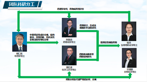 团队紧紧围绕中草药的天然成分分离、结构解析、结构改造、生物功能探索等科学问题,以抗肿瘤、抗炎、抗衰老活性的中草药活性成分发现、作用机制揭示及新型药物创制为科学目标,以“中草药活性成分分离、鉴定与修饰-抗肿瘤、抗炎、抗衰老活性筛选与优化-生物功能探索”三要素为支撑,构建生物有机化学创新研究体系。