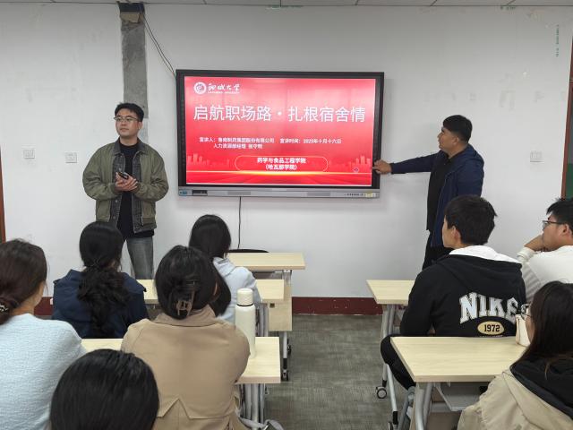 张守明围绕鲁南制药的岗位体系、薪酬结构与人才培养机制展开了系统介绍。他结合企业智能化生产车场的实际案例,生动阐释了行业技术发展的最新趋势,并建议同学们尽早关注产业变革方向,扎实学好专业知识,筑牢职业发展的基础。同时,他也提醒同学们应提前树立职业规划意识,理性分析自身兴趣与优势,在考研深造与直接就业之间做出适合个人发展的选择。员工纷纷表示,此次分享会,不仅清晰了解了鲁南制药的岗位需求与薪资福利,更解开了考研与就业选择的困惑。