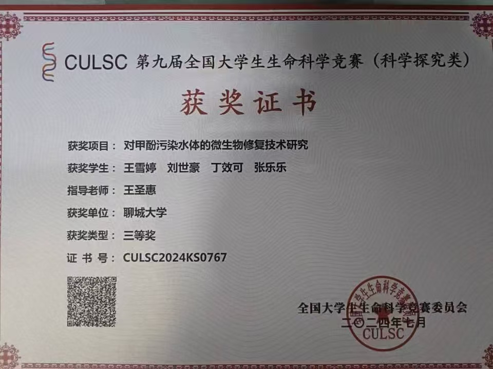 热烈祝贺三亿体育王雪婷荣获“第九届全国老员工生命科学竞赛(2024,科学探究类)”三等奖