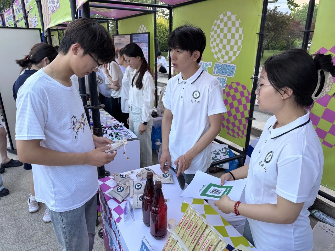 此次活动以推动区域间文旅交流合作、促进文旅资源共享与产业协同发展为目标,精准聚焦青年客群的文旅需求,搭建起极具活力的展示与互动平台,通过“浪、宅、野”三大特色场景,生动展现并推介山东文旅新产品。在这场充满青春气息与文化魅力的盛会中,公司积极参与,精心布置的摊位成为活动亮点之一,摊位上陈列着自研的学派精酿干红葡萄酒、精酿黄啤、阿胶小分子肽、花知棠护肤品、日晷香熏以及清宁枕畔安神助眠香囊。活动期间,摊位前人头攒动,现场观众纷纷被这些特色产品吸引,亲自品尝学派精酿干红葡萄酒和精酿黄啤,感受产品背后蕴含的匠心与品质。花知棠海棠精油产品和清宁枕畔安神助眠香囊也备受关注,观众亲身尝试,体验产品带来的舒适感。同时,志愿者们详细讲解产品的原料来源、制作工艺和功效,让观众深入了解到了公司在产品研发方面的创新与用心。