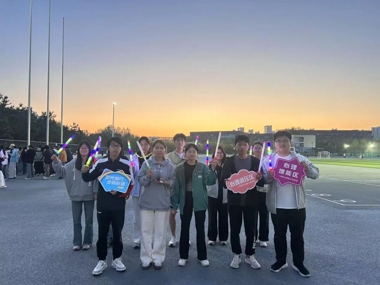 活动伊始,主持人带领同学们有序领取荧光棒,并详细讲解了活动规则与安全注意事项。随后,同学们在专业的热身指导后,随着主持人一声令下,沿着跑道有序奔跑,他们手持五颜六色的荧光棒,照亮了夜晚的操场,在跑道上形成了一道亮丽的风景线。在跑步过程中,同学们三五成群,一边享受着运动带来的快乐,一边相互鼓励、相互陪伴。响亮的口号声、欢快的笑声回荡在操场上空。活动过程中,同学们不惧困难,并肩奔跑,彼此鼓舞,相互激励,一同奔向终点。活动结束后,同学们纷纷表示这次彩虹跑是他们近期校园生活中最难忘的经历,身心都得到了极大的放松,在奔跑时还结识了志同道合的新朋友,约定以后一起坚持锻炼。