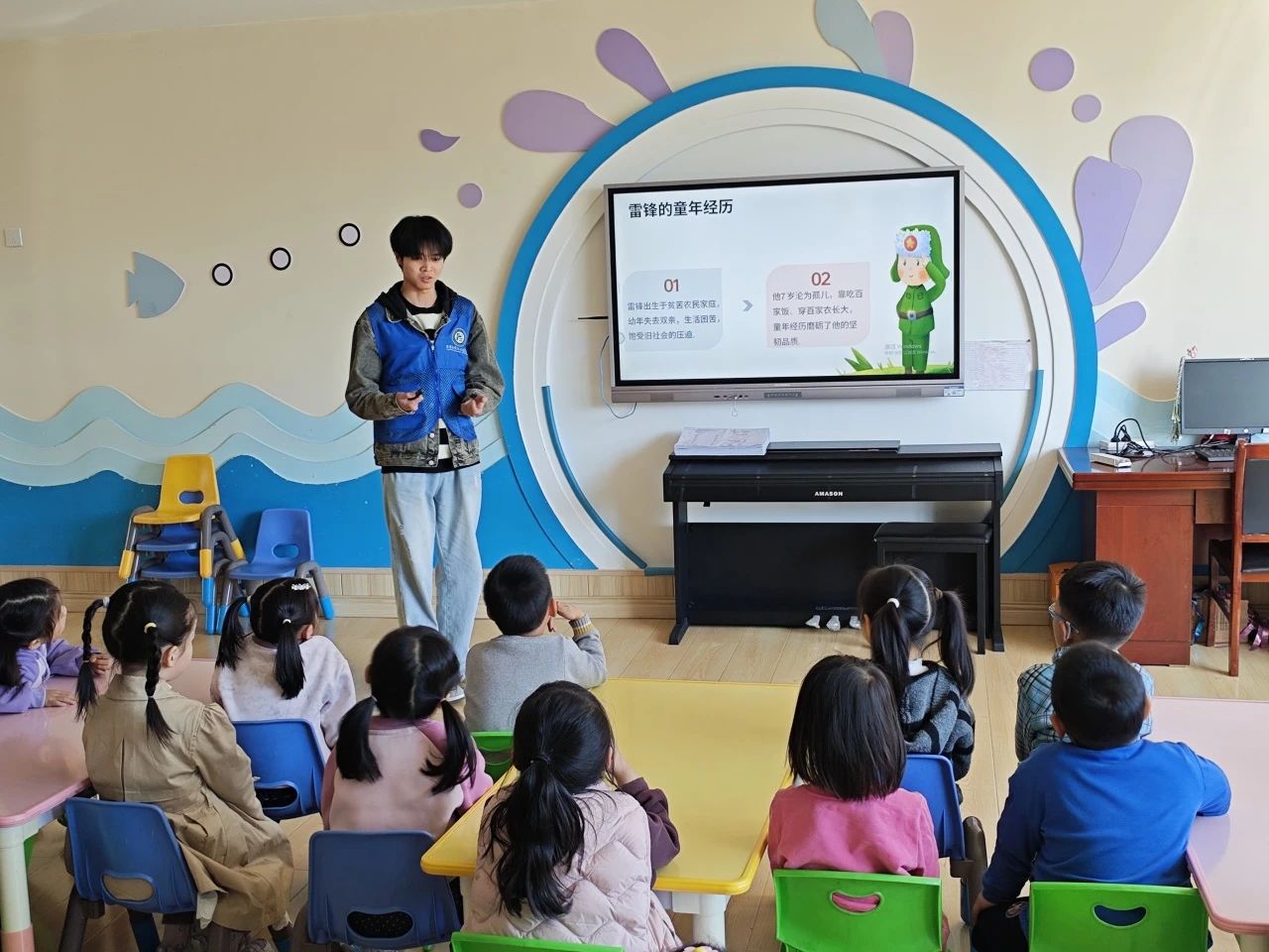 活动伊始,团队成员化身知识使者,以通俗易懂、贴合儿童认知的方式,向小朋友们讲述了雷锋苦难却坚毅的童年,以及他短暂却闪耀的一生。随后,团队成员分享了雷锋雨夜护送大嫂、在昏暗灯光下缝补旧袜等助人为乐、勤俭节约的感人故事,让雷锋精神以最鲜活的姿态走进孩子们的心中,小朋友们沉浸其中,深受触动。在互动交流环节,团队成员抛出 “日常生活中怎样传承雷锋精神”的问题,激发了小朋友们的热烈讨论。孩子们热情高涨,踊跃举手发言,答案五花八门,现场气氛十分活跃。针对孩子们的回答,团队成员逐一给予肯定,并提出了具有实用性的建议,引导他们将雷锋精神融入日常生活。活动结束后,团队成员纷纷表示,此次实践活动既是一次向小朋友传播雷锋精神的播种之行,也是自身成长的锻炼之旅。在与小朋友的互动中,大家的沟通表达与动手能力得到了显著提升,更在传承雷锋精神的道路上,贡献出了自己的青春力量。
