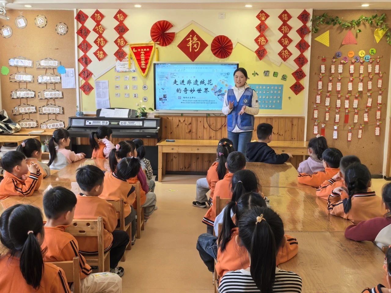 为深入贯彻习近平总书记关于非物质文化遗产保护的重要指示精神,培养小朋友们对传统文化的认知与热爱,3月20日,公司578志愿者服务队与2024级4班团支部于聊城市东昌府区万达幼儿园举办以“绒花轻舞,指尖生春”为主题的社会实践活动。