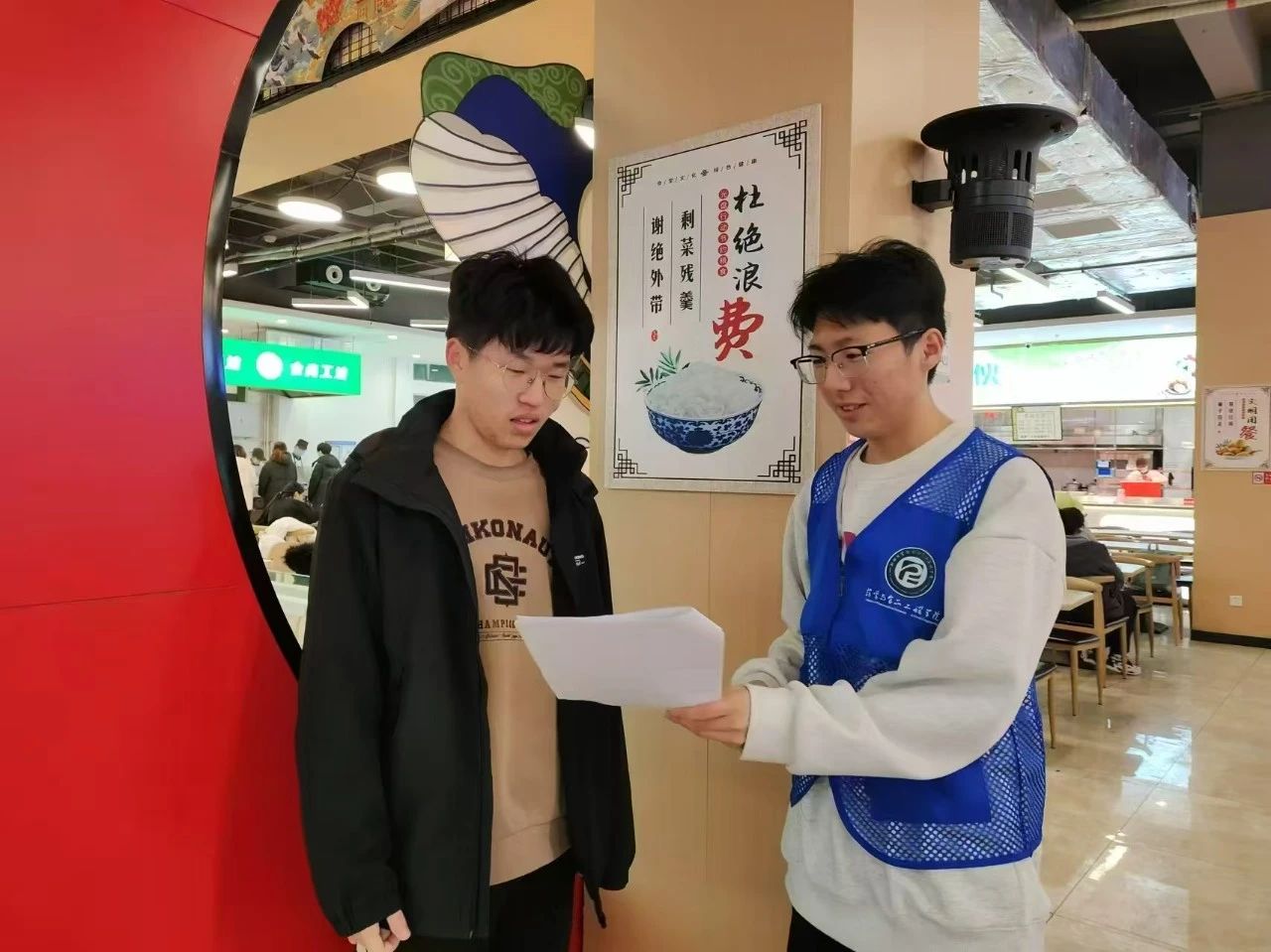 活动伊始,团队成员分成多个小组,分别深入校园内的各个餐厅、超市以及员工宿舍进行实地考察,并对同学们进行问卷调查,分别从用餐地点、食品种类、浪费原因以及减少浪费现象的措施等方面进行深入调查与分析。团队成员还与公司食堂相关工作人员进行面对面交流,围绕同学们就餐的类型、剩余量、处理方式及食堂如何更好地减少食品浪费等问题进行了深入探讨,团队成员认真倾听,并积极的提出自己的建议。活动结束后,团队成员纷纷表示,食品浪费与可持续发展之间密切相关,希望借此活动进一步加强对食品浪费问题的宣传和教育,引导更多的同学树立节约意识,共同营造浪费可耻、节约为荣的良好氛围。