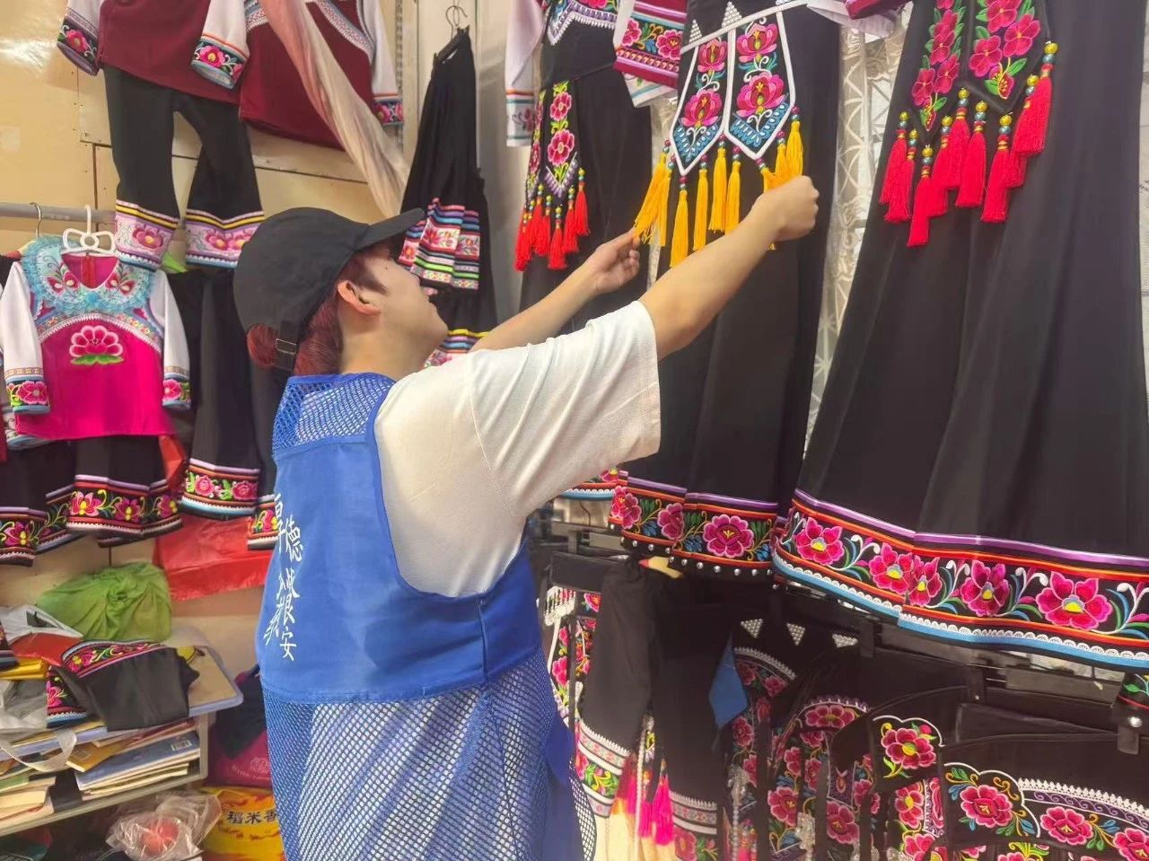 活动伊始,讲解员从彝绣的寓意讲起,将每一针每一线背后蕴含的美好祈愿,包含对丰收的期盼、对平安的祝福都娓娓道来,让团队成员深刻感受到了彝绣背后的文化内涵。接着,讲解员详细介绍了制作彝绣的各类材料,并现场演示如何穿戴精美的彝绣服饰,让团队成员直观感受到了彝绣的独特魅力。随后,团队成员移步到制作区,观摩彝绣的制作过程。手工艺人熟练地展示着纹饰刺绣、蜡染、布拼等传统技艺,每一个步骤都吸引着团队成员上前围观。活动结束后,团队成员纷纷表示,通过此次活动更深刻地认识到了非物质文化遗产的重要性和价值,将更加关注传统文化,主动宣传彝绣文化,让古老的彝绣文化在新时代绽放出更为强大的活力与生机。