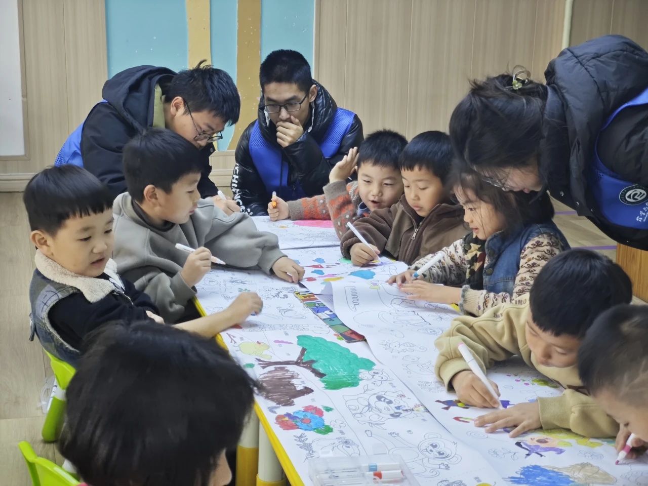 为传承和弘扬中华优秀传统文化,让小朋友们在艺术创作中感受春节的欢乐氛围,2月5日,公司生翼护医志愿服务队于聊城市东昌府区明达街实验幼儿园举办以“百米画卷绘新春 童心筑梦展新颜”为主题的社会实践活动,团队成员积极参与其中。