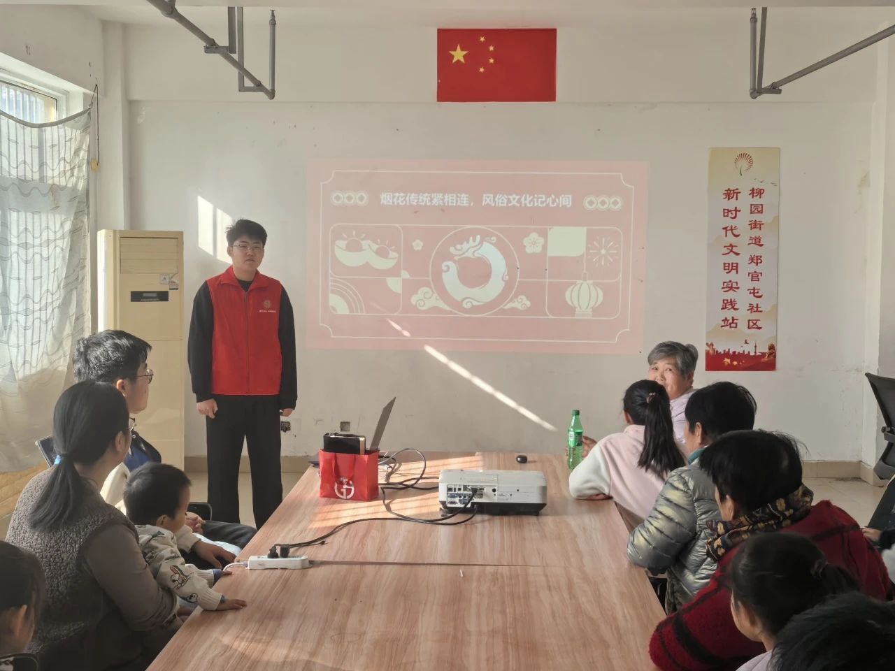 活动伊始,团队成员聚焦烟花爆竹起源,深入剖析其与节日文化相互交融的发展脉络,通过详实讲解,全方位阐释了烟花爆竹蕴含的深厚文化内涵,引领社区居民领略到中华传统文化的独特魅力。游戏互动环节,团队精心策划并组织了猜灯谜、传声筒等兼具体验性与趣味性的互动游戏,以寓教于乐的形式,有效增进社区居民对中华传统文化的深度认知与理解。此外,团队成员还向社区居民逐一发放了中草药包,并普及了传统中医药文化。活动现场气氛热烈非凡,社区居民踊跃回答问题。活动结束后,众多居民积极反馈,此次活动让他们了解到更多中华传统文化知识,极大地促进了他们对中华传统文化的认识,进一步增强了对民族文化的自豪感与自信心 。