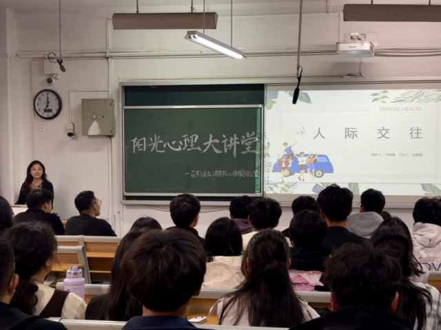 活动伊始,主讲人通过对信任、沟通、尊重、合作等人际交往几个关键要素的讲解,帮助同学们了解人际交往的基本原则和技巧。随后,主讲人通过一些生动的案例解析了如何与不同性格的人相处、如何建立良好的人际关系等,让同学们体会到这些要素在人际交往中的重要作用。最后,主讲人组织了“你画我猜”的小游戏,进一步加深同学们对讲座内容的理解,促进了同学们之间的交流,活动现场气氛热烈,大家纷纷表示收获颇丰。