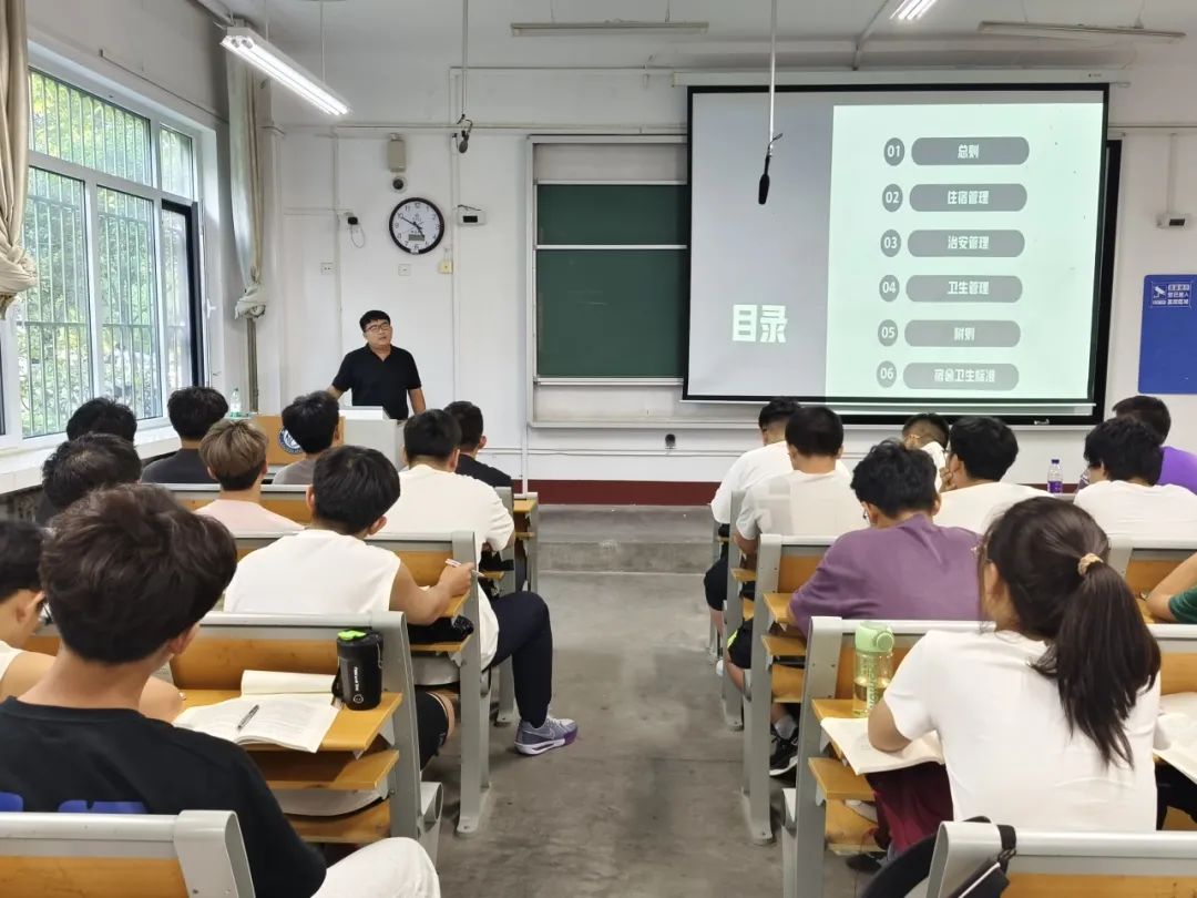 为引导新生自觉遵守寝室规定,保持良好的行为习惯和社交礼仪,共同营造一个宜居、和谐的寝室环境,9月2日,公司于三亿体育官网2#101举办2024级新生公寓管理规定政策解读入学教育,2024级辅导员张珍军主持本次活动。