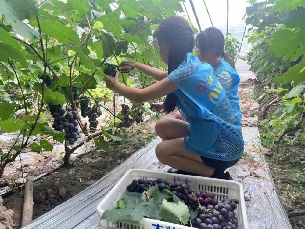 活动开始前,团队进行了充分的准备,收集了大量关于当地农业、经济等方面的资料,并制定了详细的实践计划。活动伊始,团队成员来到当地农民家中,了解到该农民正在进行葡萄的采收,由于劳动力不足,采收效率较低,于是团队成员自发组织帮助农民采收葡萄。所谓“众人拾柴火焰高”,在团队成员的帮助下,很快便将大棚内成熟的葡萄全部采收完成。通过实地考察,发现当地农业发展面临的一些挑战,如基础设施的不足、信息的闭塞等,尽管条件相对艰苦,农民们依然保持着乐观向上的精神,用自己的双手努力改变着生活。团队成员通过引导他们学习现代农业技术以及拓宽农产品的销售渠道,来帮助他们更好地生产。