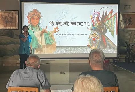 为保障活动的顺利开展,团队成员提前联系社区工作者确认活动时间,并提前了解老人们对戏曲的喜好,确定演出曲目。本次活动不仅在于传承中华传统戏曲文化,更是为了陪伴老人们,通过演唱戏曲来丰富他们的娱乐生活。活动过程中,团队成员首先向老人们介绍戏曲文化的相关知识,然后由团队成员表演传统黄梅戏《天仙配》和《女驸马》,以及现代风格的京剧《武家坡》,展现出了戏曲在传统与现代风格之间的灵活转换。演出结束后,团队成员将老人们分成两组,由团队成员分别向老人们讲解戏曲演唱的要点与方法,并耐心地教老人们演唱,对于老人们提出的问题进行细致的解答,同时团队成员鼓励他们大胆演唱,老人们将他们学到的戏曲展示出来,得到了热烈的掌声。