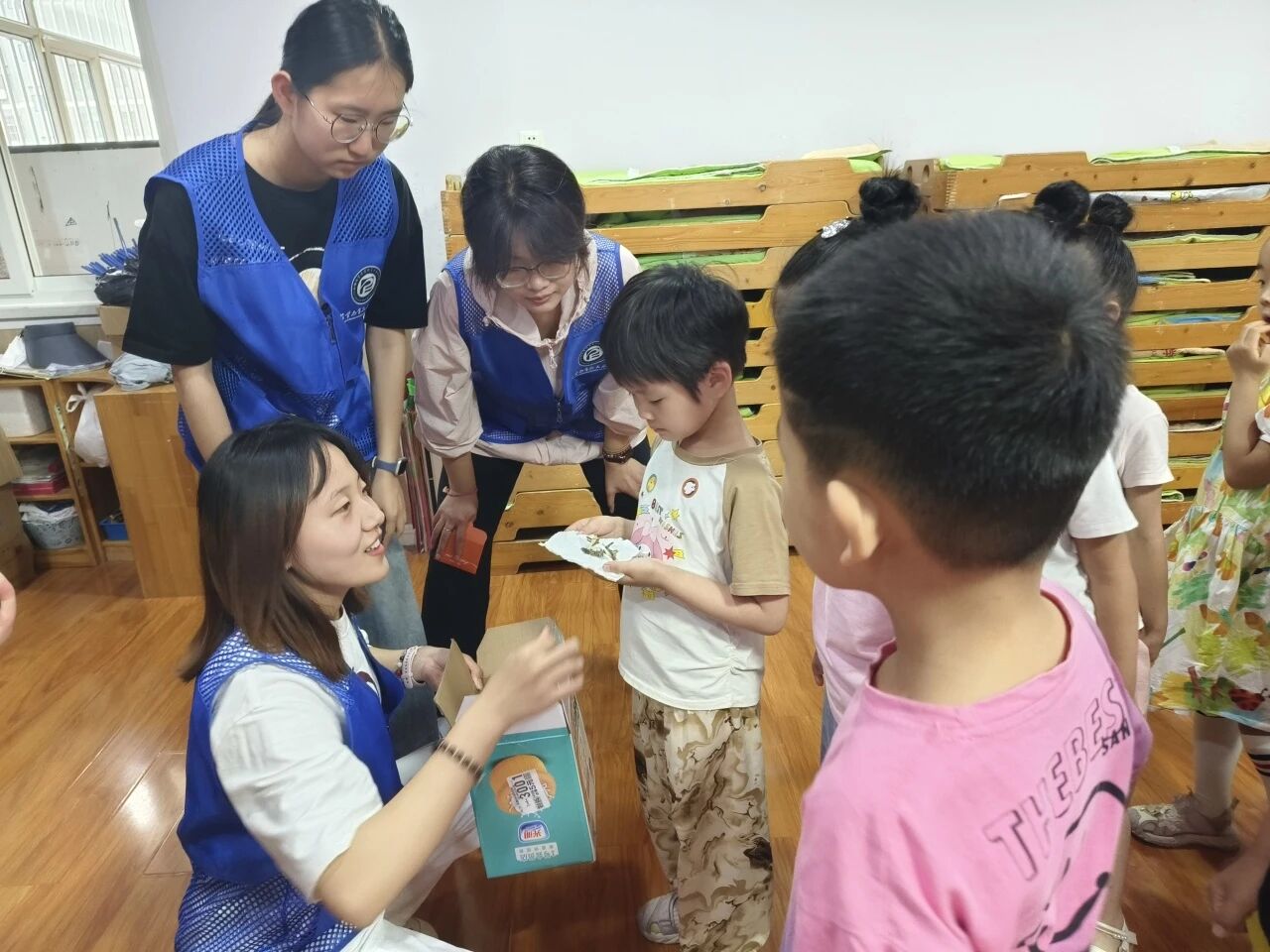 活动中,团队成员通过前期科普以及实物讲解,激发小朋友们对中草药的兴趣,在此基础上,团队成员特别设计了“中草药猜猜猜”趣味互动游戏。团队成员准备了“中草药摸箱”,箱内装有石菖蒲、青皮、合欢花、干菊花、苦杏仁等安全可接触的中草药实物,同时提供了对应的高清植物图片以供辅助教学。孩子们轮流参与挑战,通过触摸形状来辨别药材,依靠嗅觉来猜测所接触的草药名称。团队成员适时给予奖励,现场氛围轻松愉快,小朋友们纷纷表示认识了不同中草药的形态,学习了中草药的特性,收获了快乐与成长。