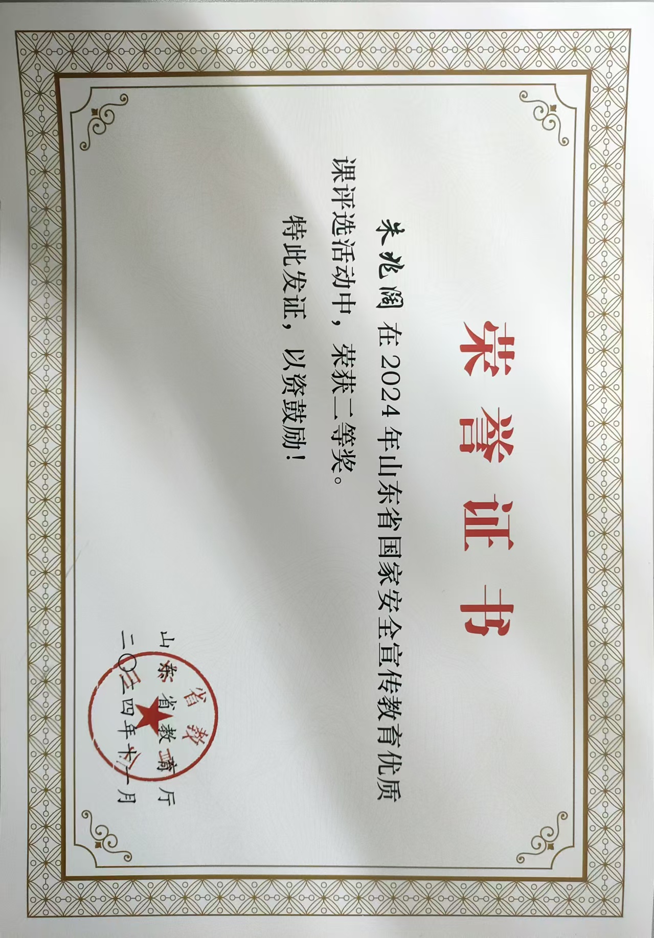 热烈祝贺三亿体育朱兆阔老师在2024年山东省国家安全宣讲教育优质课评选活动中,荣获二等奖