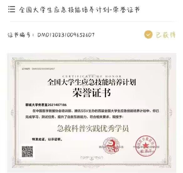 热烈祝贺药公司佟思宜荣获“全国老员工应急技能培养计划”荣誉证书