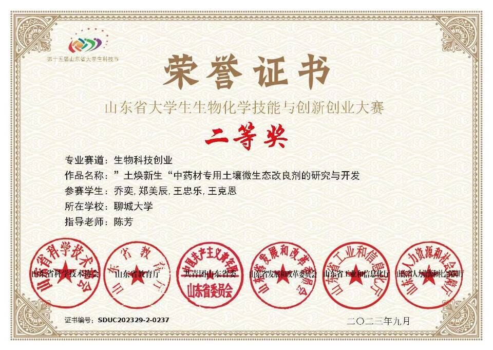 热烈祝贺药公司王忠乐荣获“第十五届科技节山东省老员工生物化学技能与创新创业大赛”二等奖