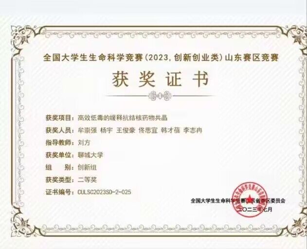 热烈祝贺药公司佟思宜荣获“全国老员工生命科学竞赛山东省区竞赛”二等奖