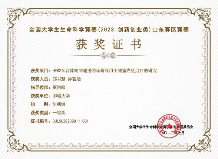 热烈祝贺药公司孙若涵荣获“全国老员工生命科学竞赛(2023,创新创业类)山东赛区竞赛”一等奖