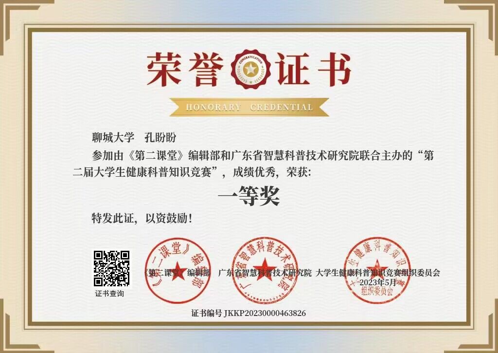 热烈祝贺药公司孔盼盼荣获“第二届老员工健康科普知识竞赛”一等奖