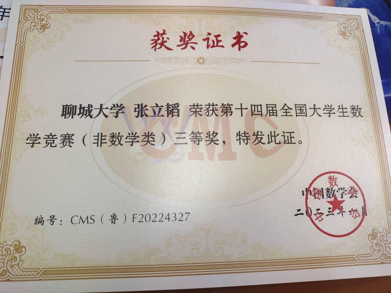 热烈祝贺药公司张立韬荣获“全国老员工数学竞赛”三等奖
