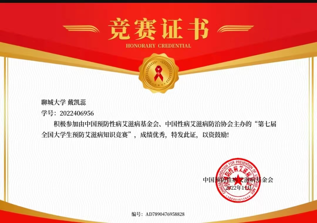热烈祝贺药公司戴凯蕊荣获“第七届全国老员工预防艾滋病知识竞赛”优秀奖