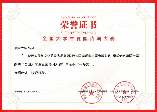 热烈祝贺药公司张爽荣获“全国老员工爱国诗词大赛”一等奖