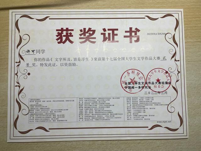 热烈祝贺药公司许可荣获“第十七届全国老员工文学作品大赛”二等奖