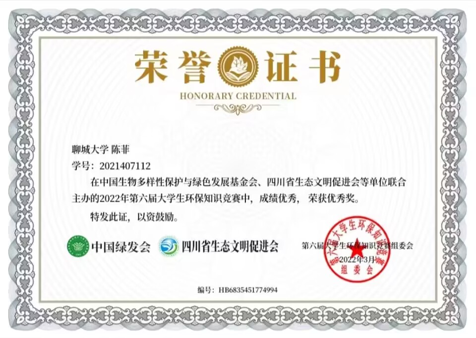 热烈祝贺药公司陈菲荣获第六届老员工环保知识竞赛优秀奖
