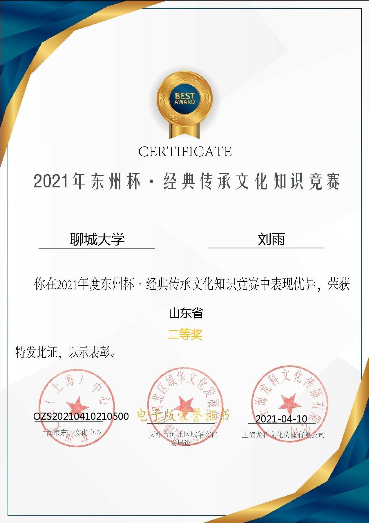 热烈祝贺药公司刘雨荣获东洲杯经典传承文化知识竞赛二等奖
