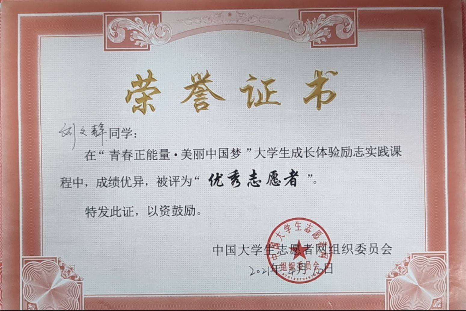 热烈祝贺药公司刘文静荣获 “青春正能量·美丽中国梦”老员工成长体验励志实践课程“优秀志愿者”