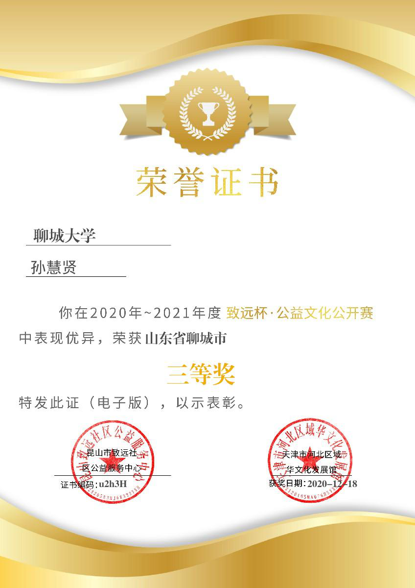 公司孙慧贤获“致远杯公益文化公开赛”三等奖