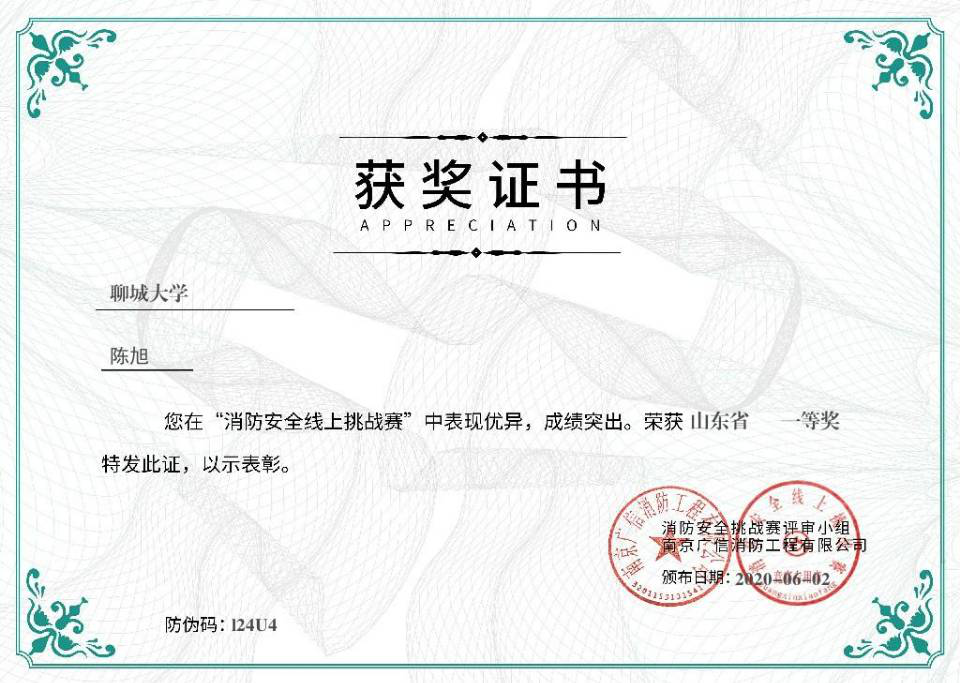 公司陈旭获“消防安全线上挑战赛”一等奖