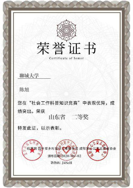 公司陈旭获“社会工作科普知识竞赛”二等奖