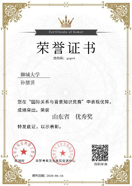 公司孙慧贤获“国际关系与背景知识竞赛”优秀奖