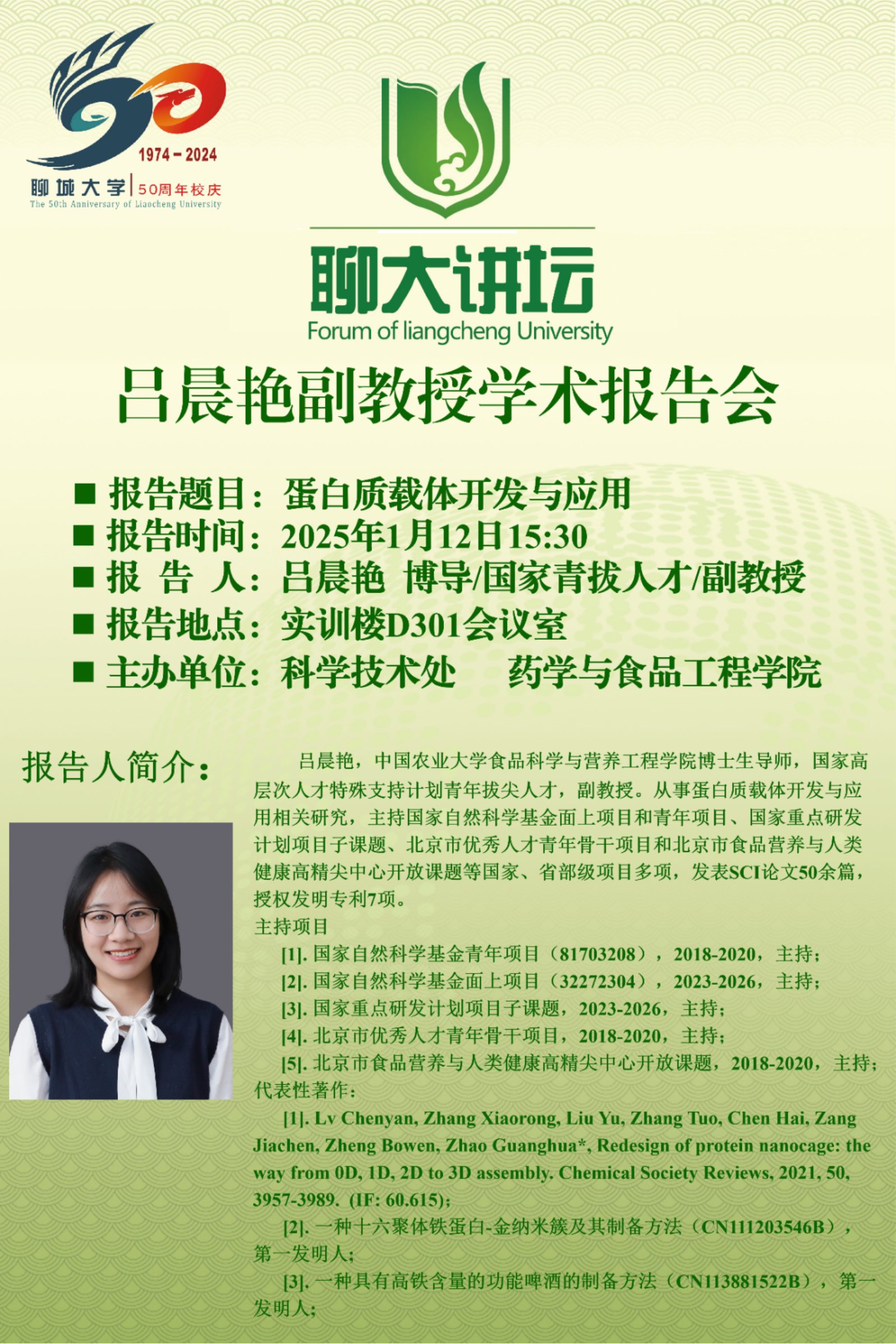 1月12日下午,中国农业大学食品科学与营养公司吕晨艳研究员受邀为三亿体育师生作题为“蛋白质载体开发与应用”的学术报告。报告会由食品科学与工程系主任郭兴峰主持,公司部分师生参加了报告会。