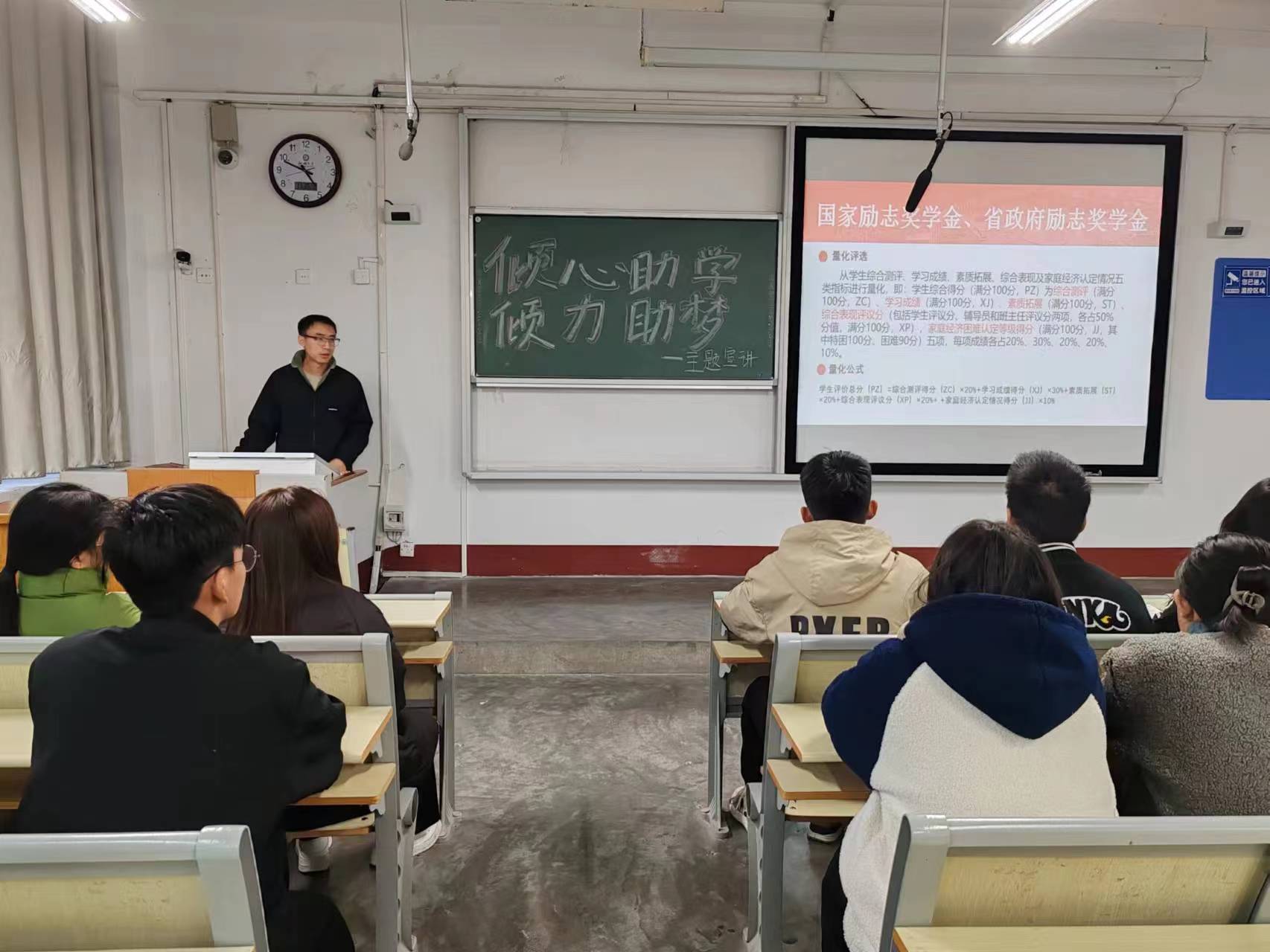 为深入宣传高校国家资助政策,扩大资助政策惠及范围,完善资助育人功效,让符合申请条件的员工得到经济支持,更加专心的投入学习之中,11月9日,公司于三亿体育官网东校区2#201举办“倾心助学,倾力筑梦”主题宣讲活动,本次活动由辅导员徐致远担任主讲人。