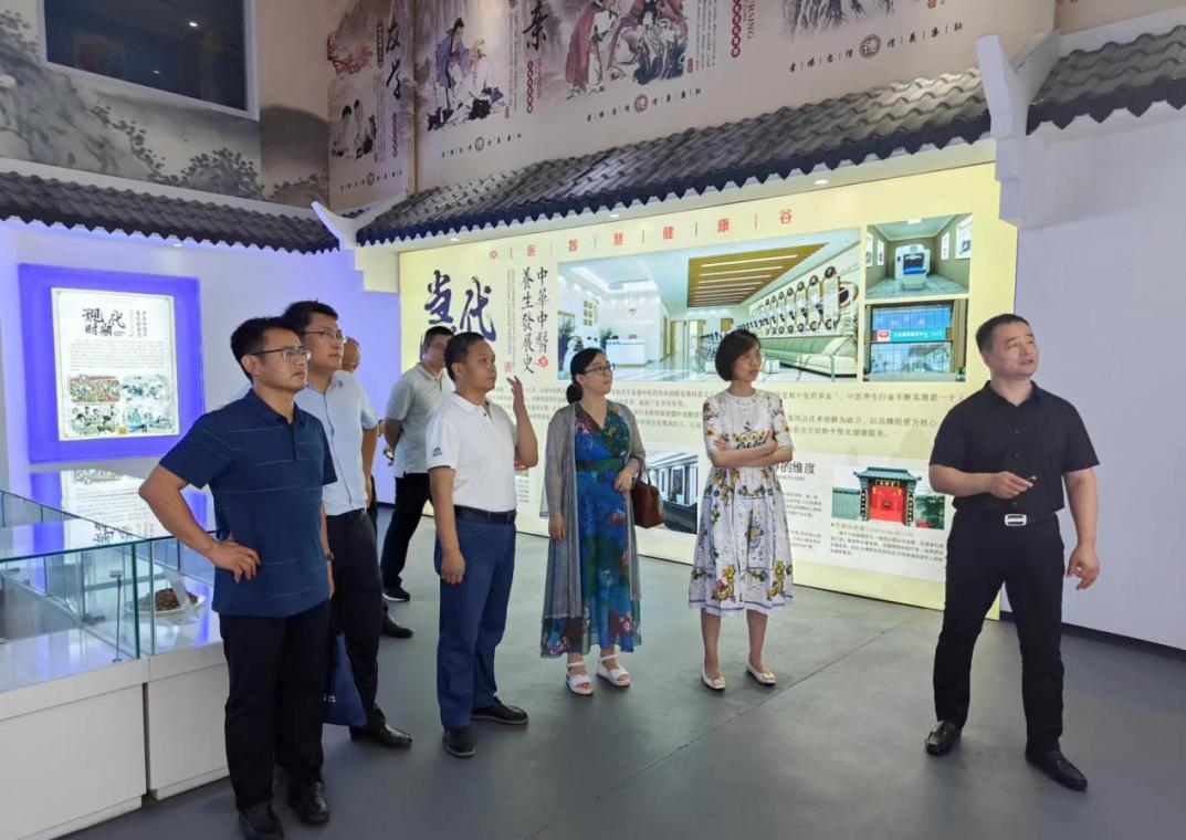 九州控股集团董事长刘钦松、总经理刘孟刚带领公司一行人参观了九州控股集团中医健康谷展厅及中医文化长廊、成颐堂康养体验中心、电商选品基地以及生产研发中心。