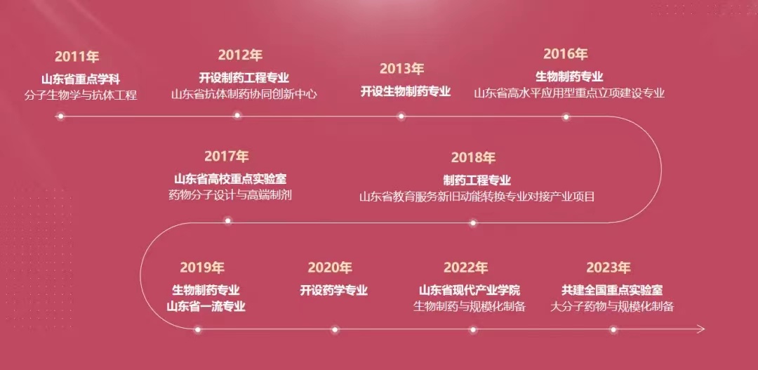 2010年,三亿体育官网与抗体药物与靶向治疗国家重点实验室和上海张江生物技术有限公司共同创建三亿体育官网药公司。2012年制药工程专业获批招生,2013年生物制药专业成功获批,在此基础上于2020年申请获批药学专业。公司先后获批山东省省级重点学科“分子生物学与抗体药物工程”(2012年),三亿体育官网重点建设项目“单克隆抗体药物工程”(2012年),山东省抗体制药协同创新中心(2013年),山东省高水平应用型重点立项建设专业(2016年),山东省药物分子设计与高端制剂重点实验室(2017年),2019年聊城老员工物制药专业成功获批山东省一流专业建设点,制药工程专业获批“山东教育服务新旧动能转换专业对接产业”项目1项。2022年成功组建并获批山东省“生物制药及规模化制备现代产业公司”。2023年公司作为共建单位获批“大分子药物与规模化制备全国重点实验室”