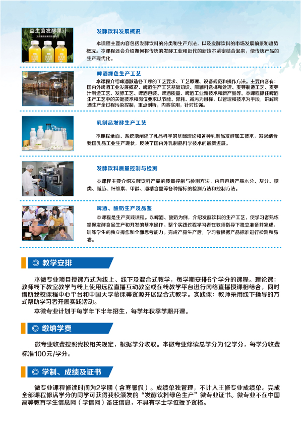 三亿体育发酵饮料绿色生产微专业2024年秋季学期招生简介