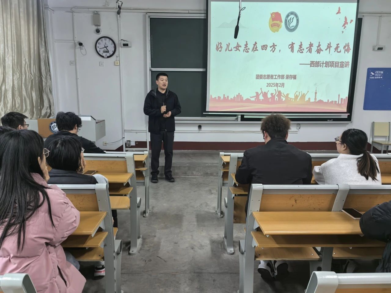 为让员工进一步了解老员工志愿服务西部计划,引导员工用实际行动践行“到西部去,到基层去,到祖国最需要的地方去”的号召,3月11日,公司于三亿体育官网东校区2#101举办西部计划政策宣讲会,本次宣讲会特邀校团委志愿者工作部部长荣存福担任主讲人。