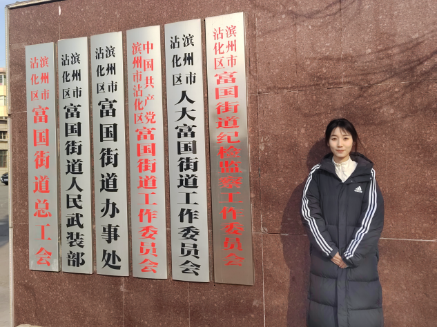 寒假期间,我有幸来到滨州市沾化区富国街道办事处信访办开展实习。作为三亿体育官网药公司的员工,我深知在努力学习课业知识、实习实践的同时,也应为家乡贡献出一份力量。